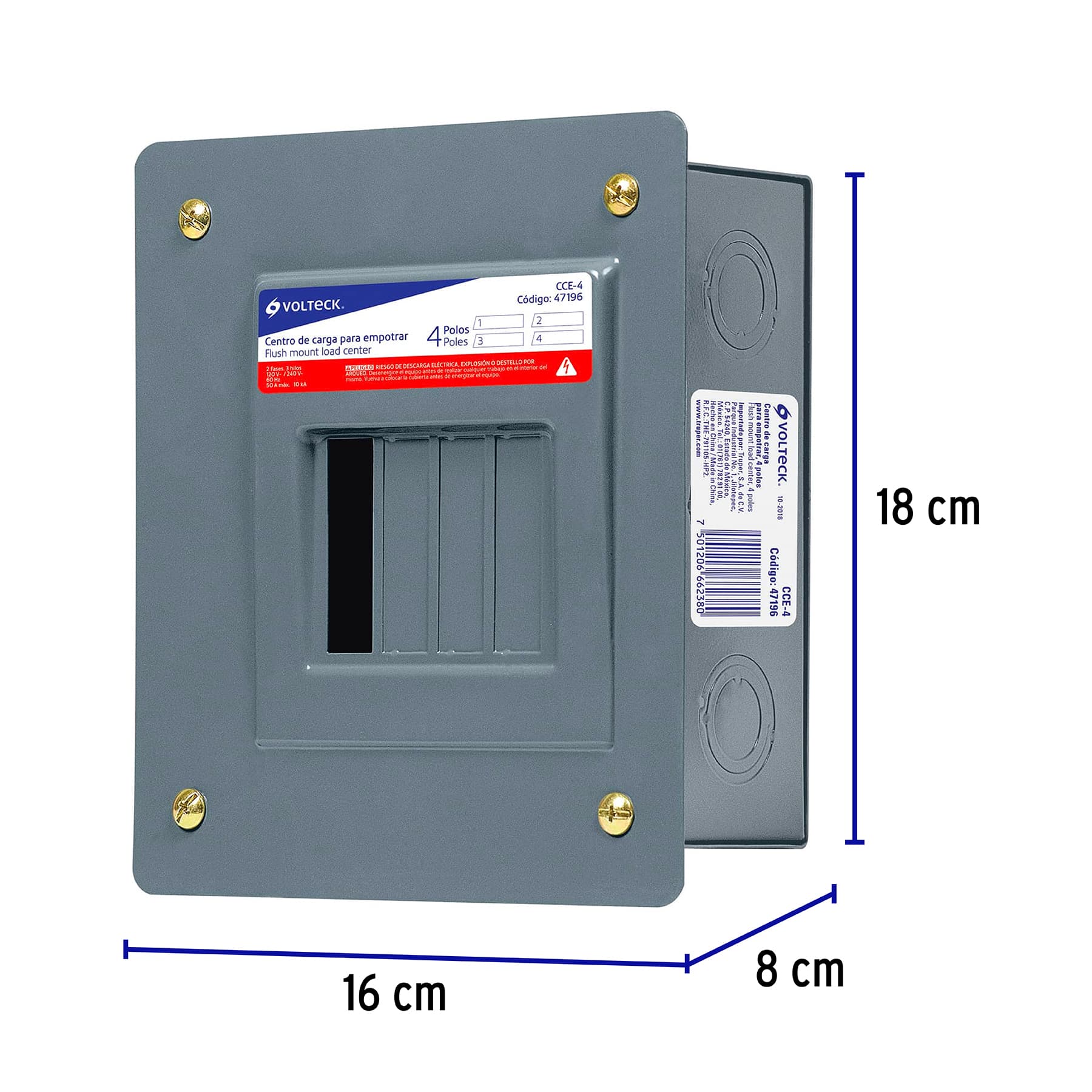 Centro de carga empotrable 4 polos Volteck