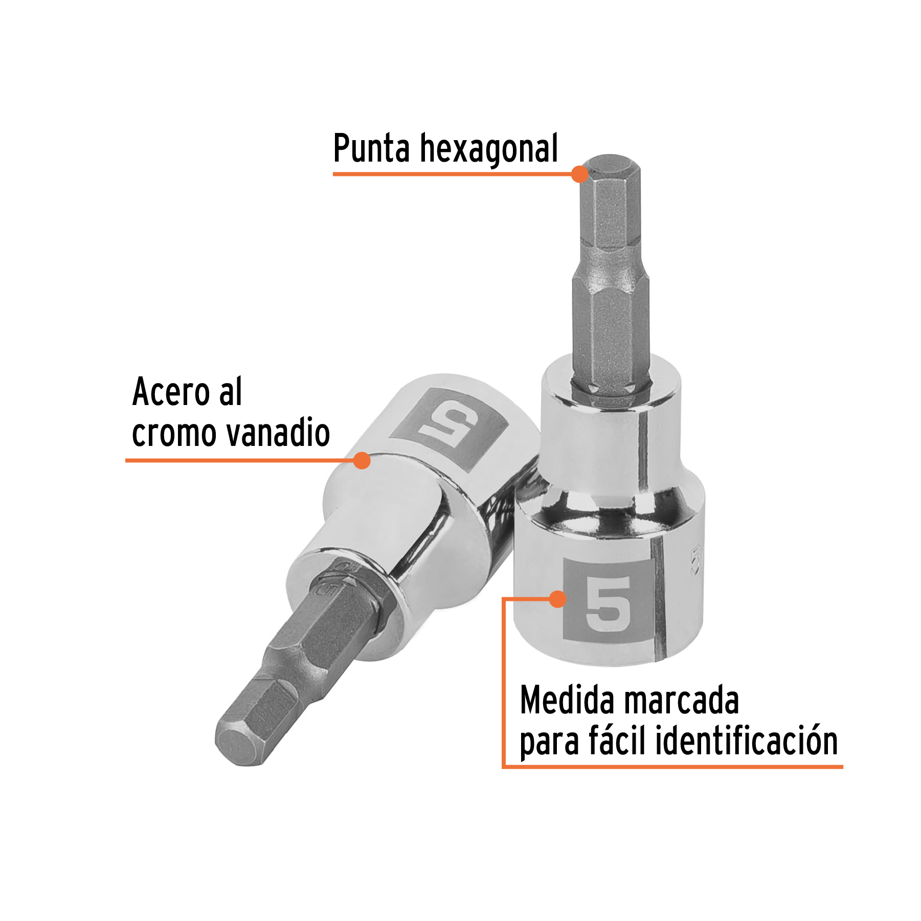 Dados de punta hexagonal, cuadro 3/8″ de 5mm.