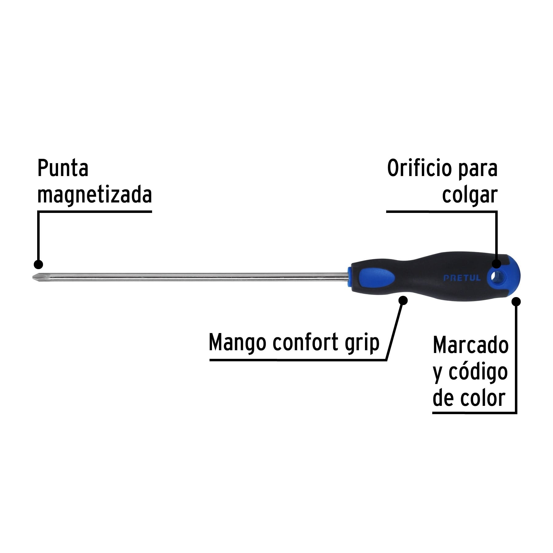 Desarmador de Cruz Phillips 1/4 x 8″ Comfort Grip Pretul