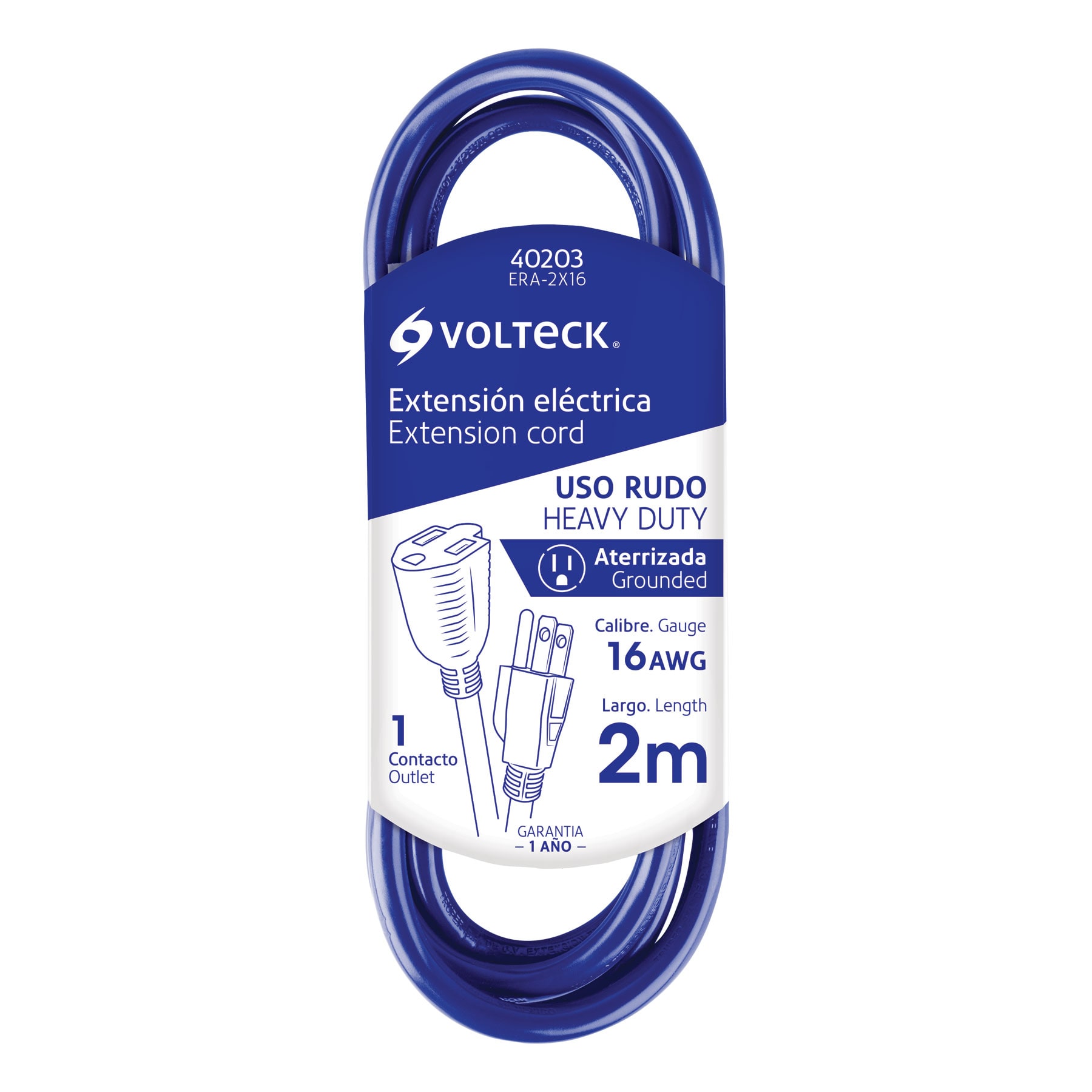 Extension electrica uso rudo aterrizada 2m calibre 16 Volteck