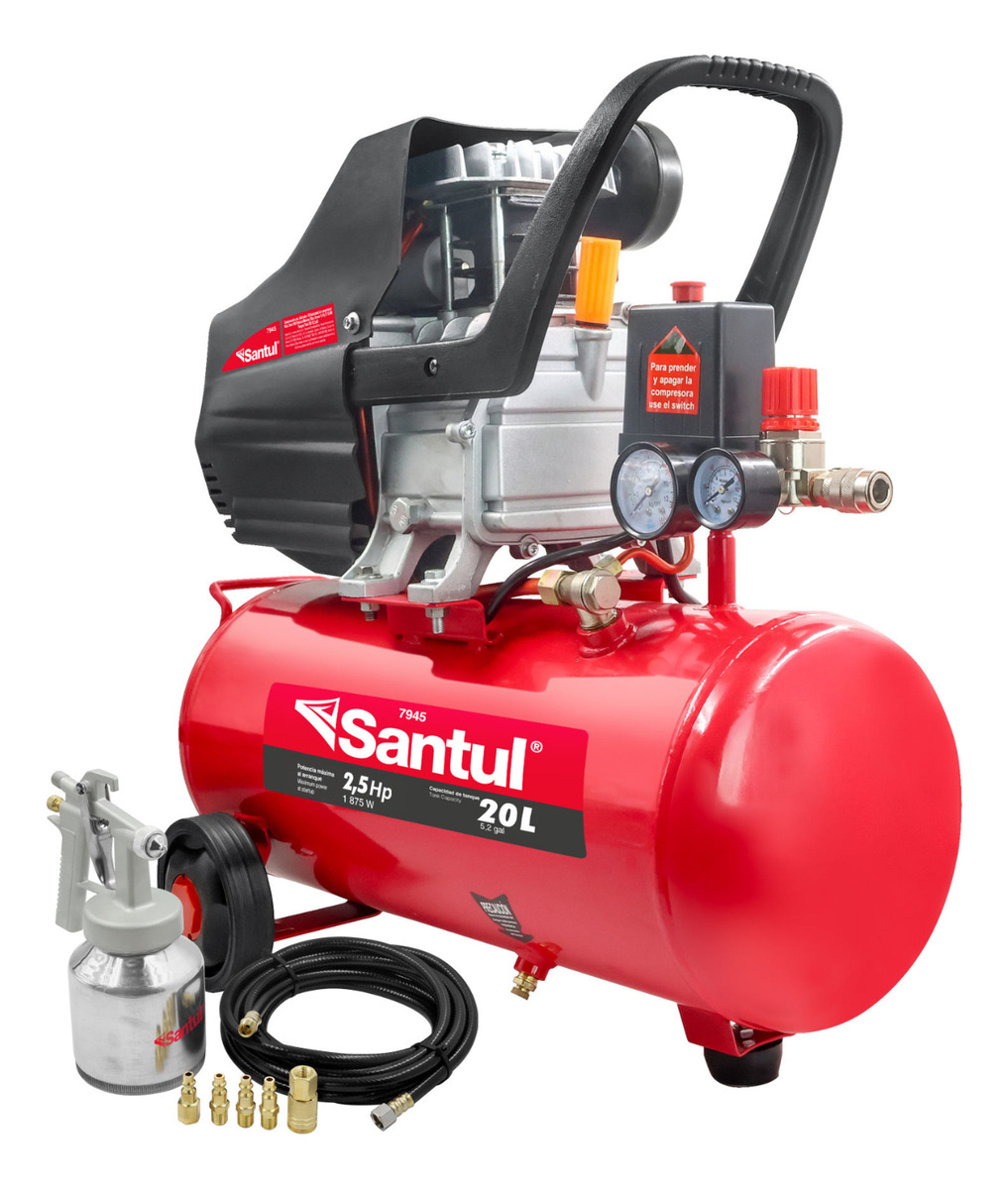 Kit compresor 20L 2-1/2HP manguera PVC y pistola Santul