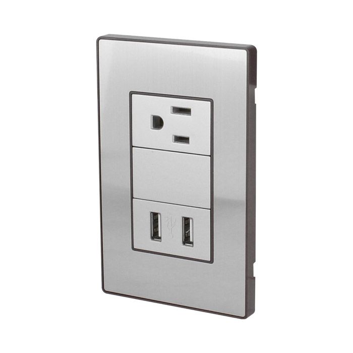 Placa Armada Contacto y 2 USB Acero Inoxidable Cordoba