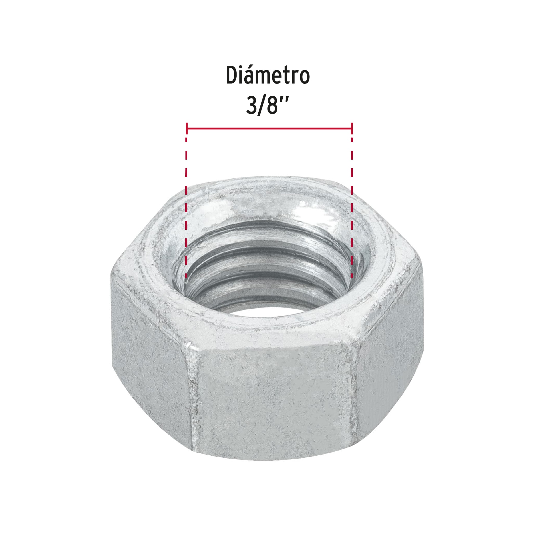 Tuerca hexagonal de 3/8″ galvanizada bolsa 100 pzas