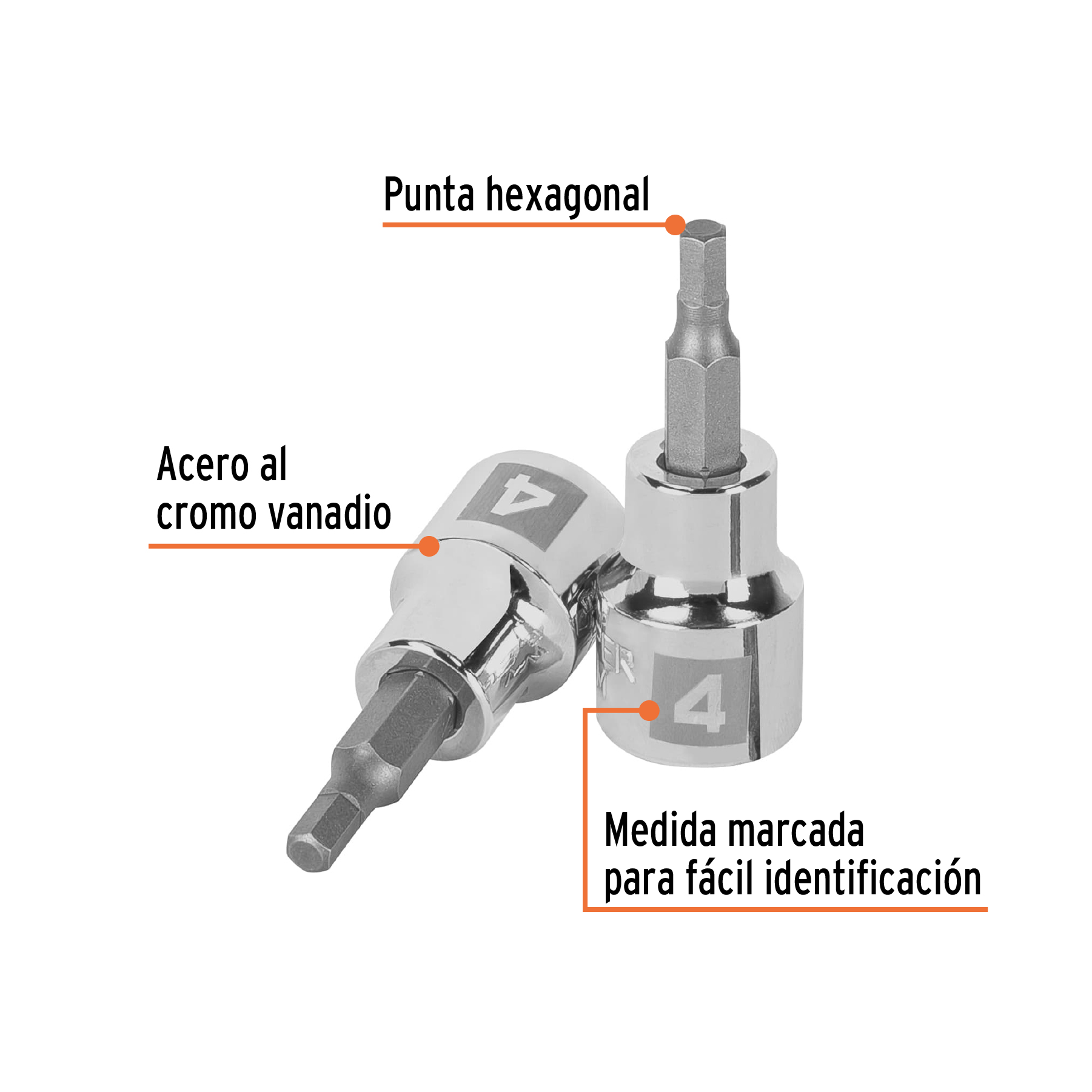 Dados de punta hexagonal, cuadro 3/8″ de 4mm.