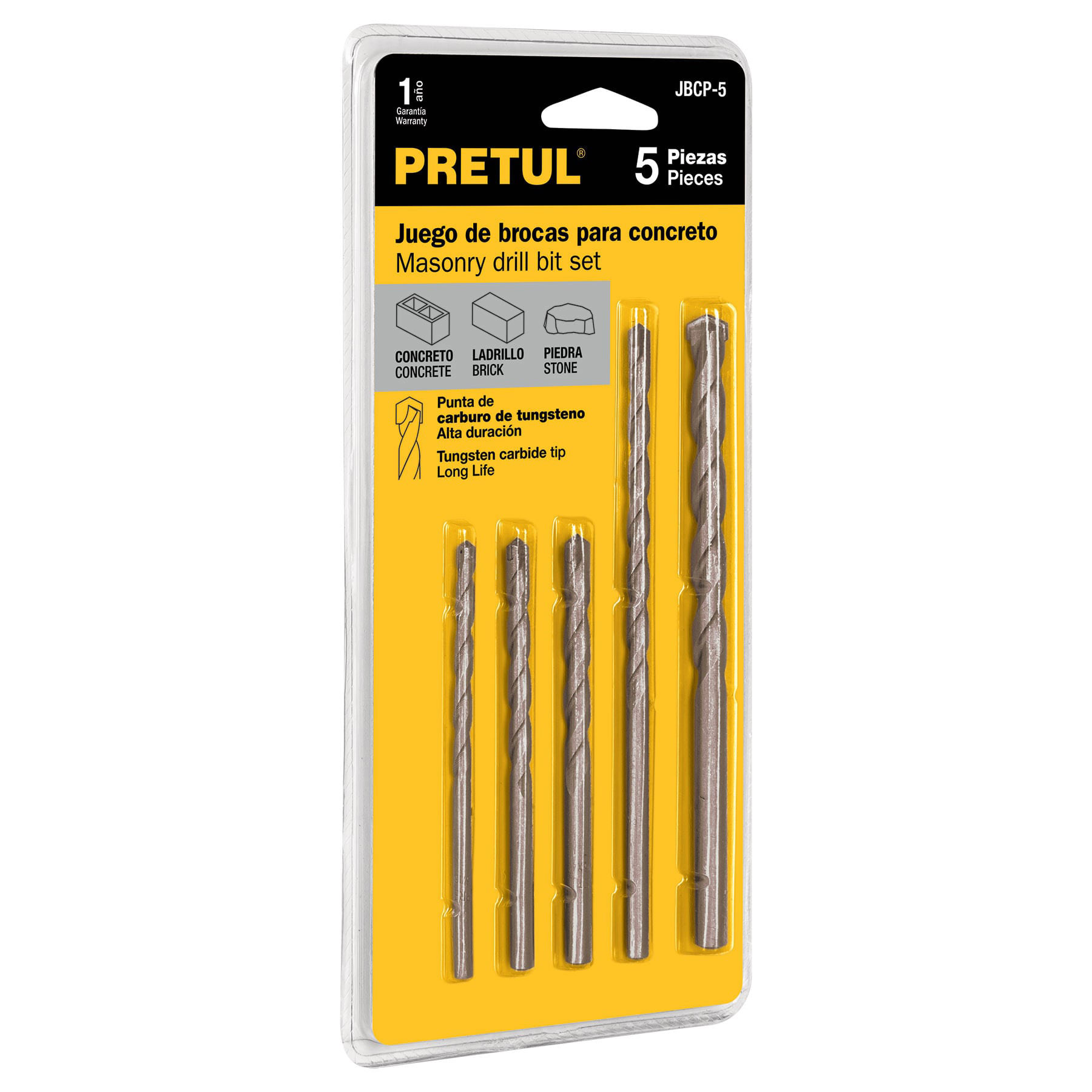 Juego de brocas para concreto 5 piezas Pretul