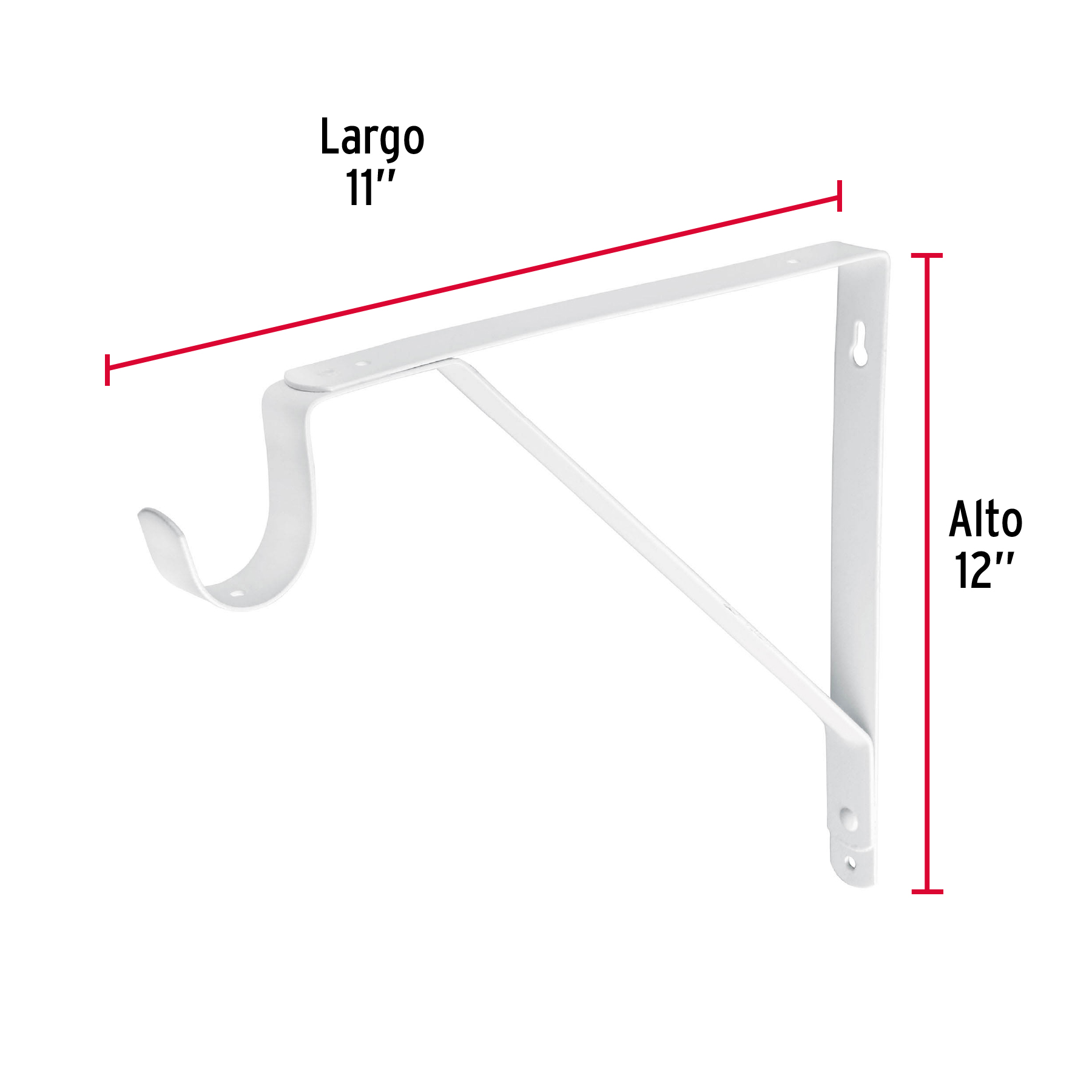 Mensula reforzada blanca con gancho de 11 x 12″