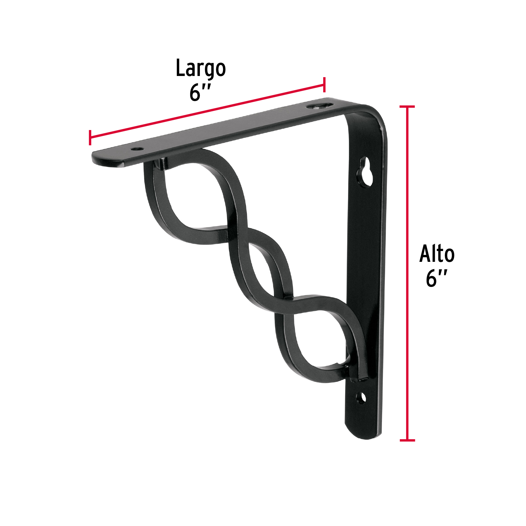 Mensula reforzada negra diseño trenza, 6 x 6″