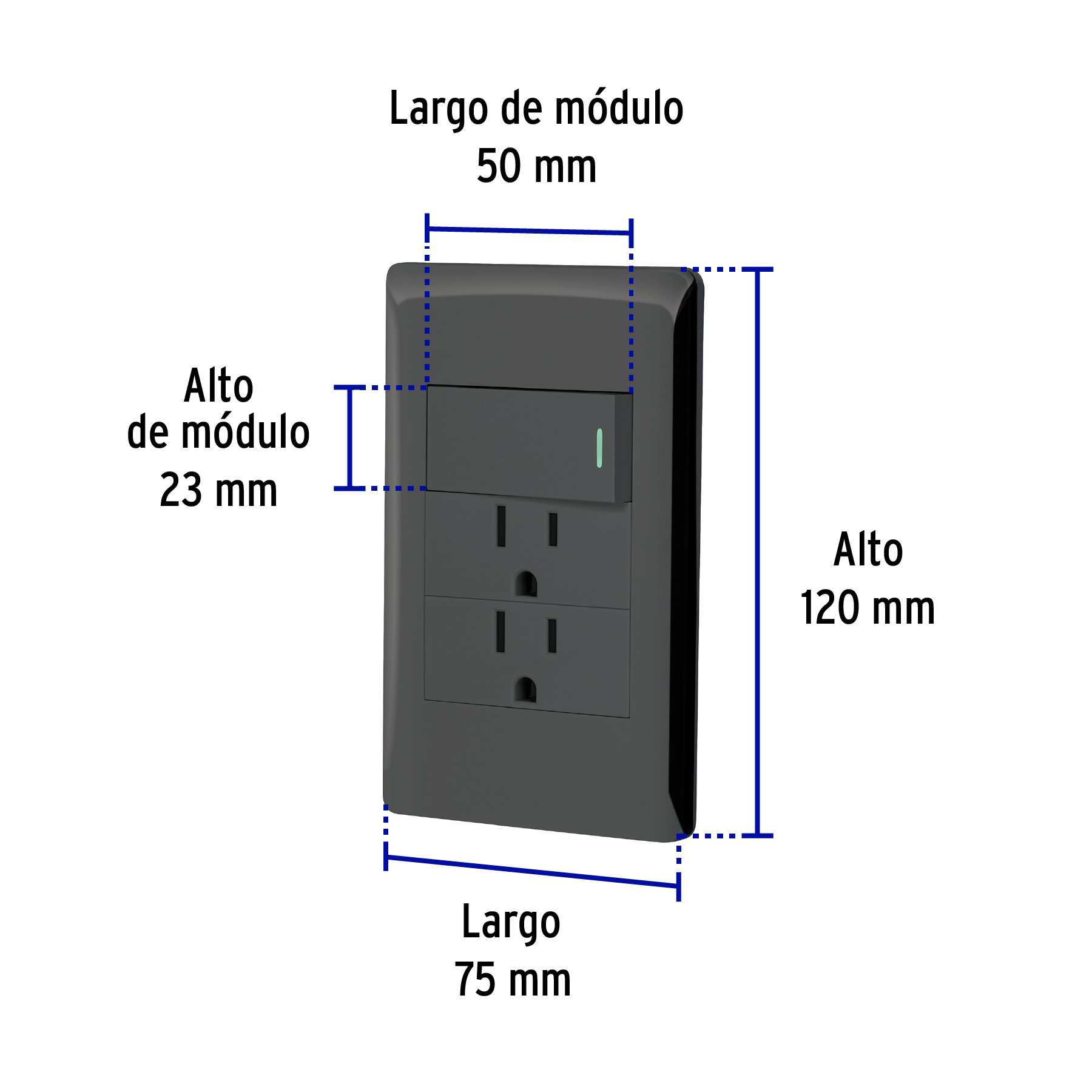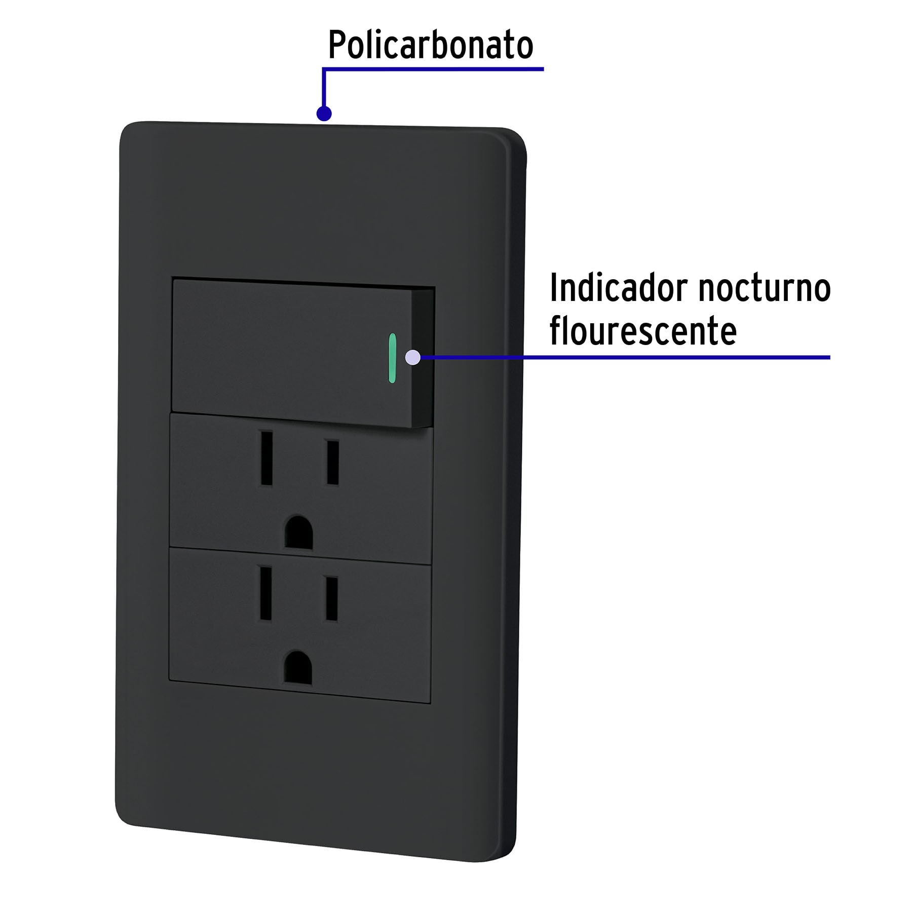 Placa Armada Apagador y Doble Contacto Lisboa Negro
