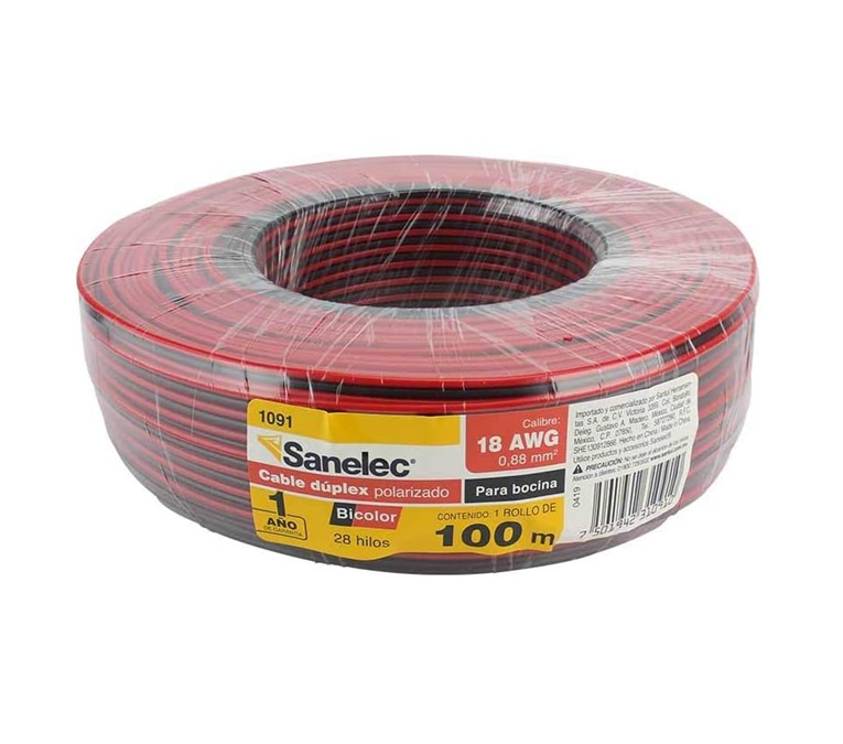 Rollo 100m Cable Polarizado bocina 18awg bicolor